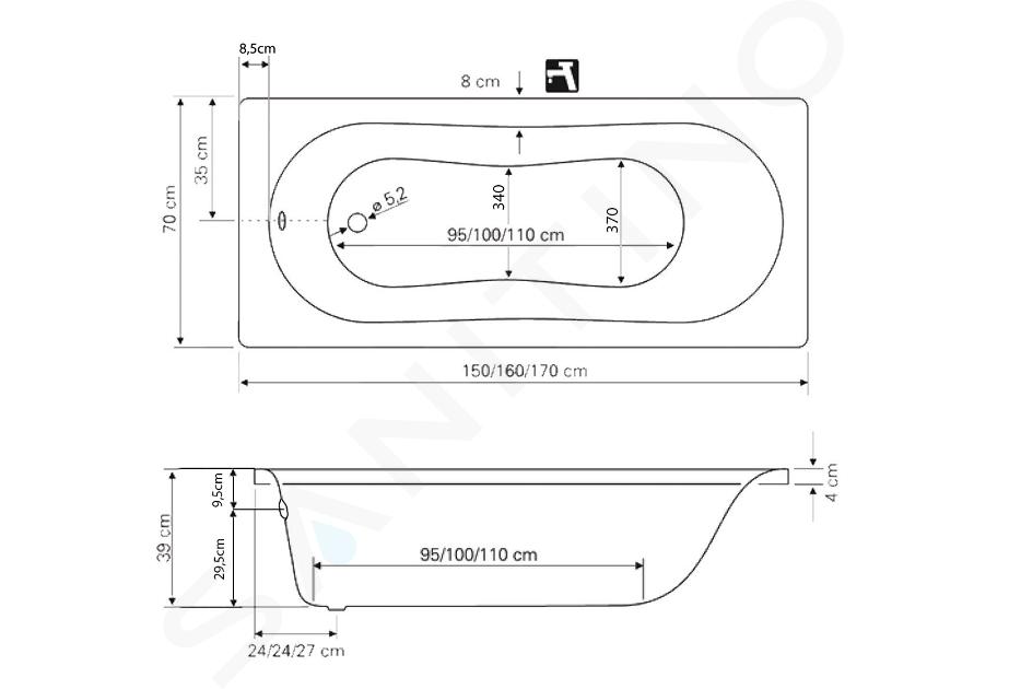La surface de cette baignoire est constituée d'une couche d'acrylique, la couche inférieure de la coque de la baignoire est constituée d'un matériau ABS durable, qui est un plastique de qualité dont la rigidité est égale à celle de l'acrylique. La baignoire est donc très solide et durable, mais sa surface est en même temps très agréable au toucher. Il ne refroidit pas au toucher et possède d'excellentes propriétés thermiques, ce qui lui permet de maintenir la température de l'eau. Il atténue également le bruit de l'eau pendant le remplissage. Sa couleur blanche est un symbole de propreté et d'hygiène et elle s'harmonise parfaitement avec les autres équipements de la salle de bains.