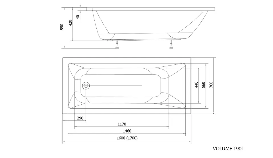 Baignoire rectangulaire Doubrava dimensions : 1700 x 700 x 420 mm... Afficher la description complète