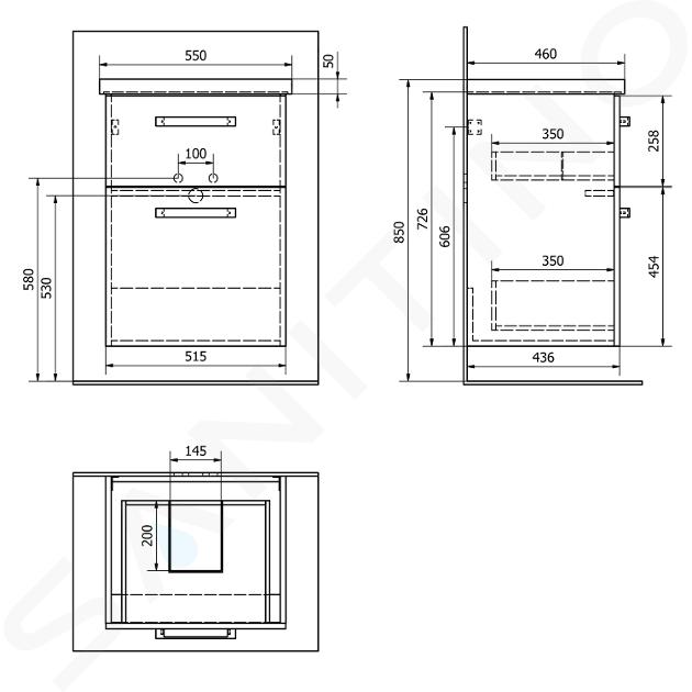Meuble suspendu sous le lavabo, 2 tiroirs