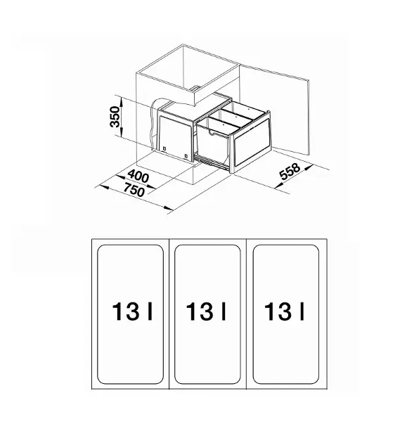 Poubelle intégrée avec coulissement automatique par ouverture de la... Afficher la description complète
