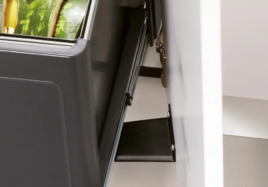Poubelle intégrée avec coulissement automatique par ouverture de la porte