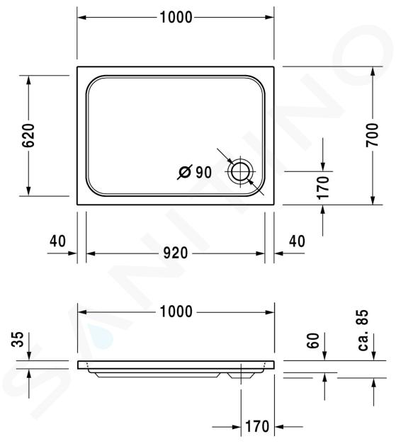 Receveur de douche acrylique dimensions : 1000 × 700 mm épaisseur : 85... Afficher la description complète