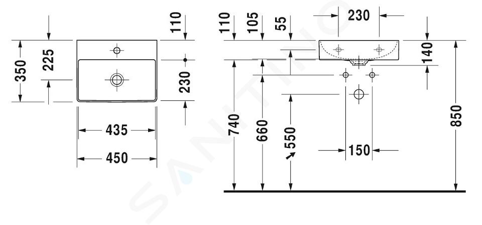Lave-mains suspendu sans trop-plein dimensions : 450 x 350 x 140 mm... Afficher la description complète