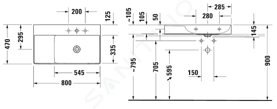 Lavabo asymétrique sans trop-plein dimensions : 800 × 470 × 145 mm... Afficher la description complète