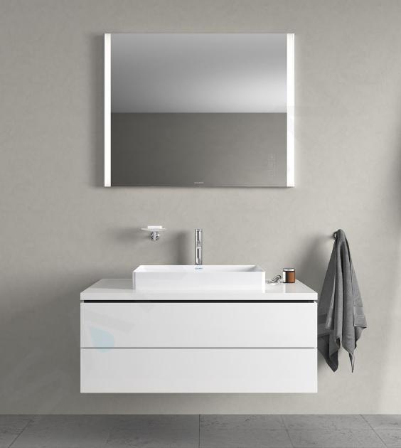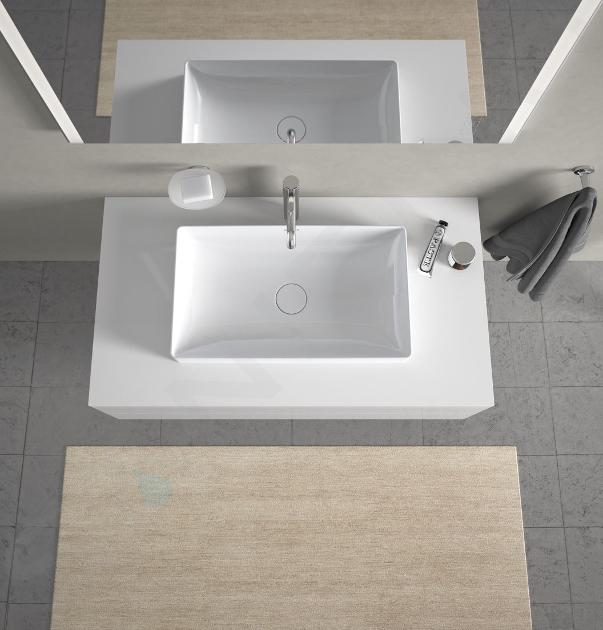 Le lavabo à poser Duravit DuraSquare a un caractère aérien et, comme il n'est pas fixé à un endroit particulier, il apporte une atmosphère de liberté et de légèreté à l'intérieur. Un élément important est, bien sûr, un meuble lavabo bien choisi sur lequel vous pouvez organiser votre espace de rangement. Ainsi, vous ne devez pas seulement ranger vos brosses à dents et votre savon autour de votre lavabo, mais aussi vos produits cosmétiques ou vos accessoires de rasage.