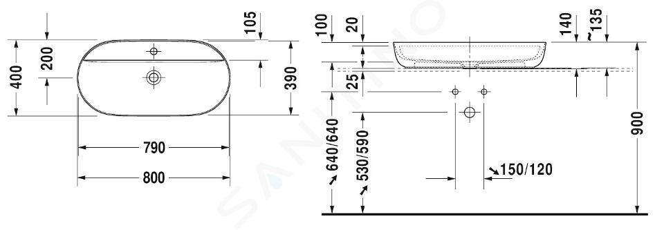 Vasque à poser Luv dimensions : 800 × 400 × 140 mm matériau DuraCeram,... Afficher la description complète