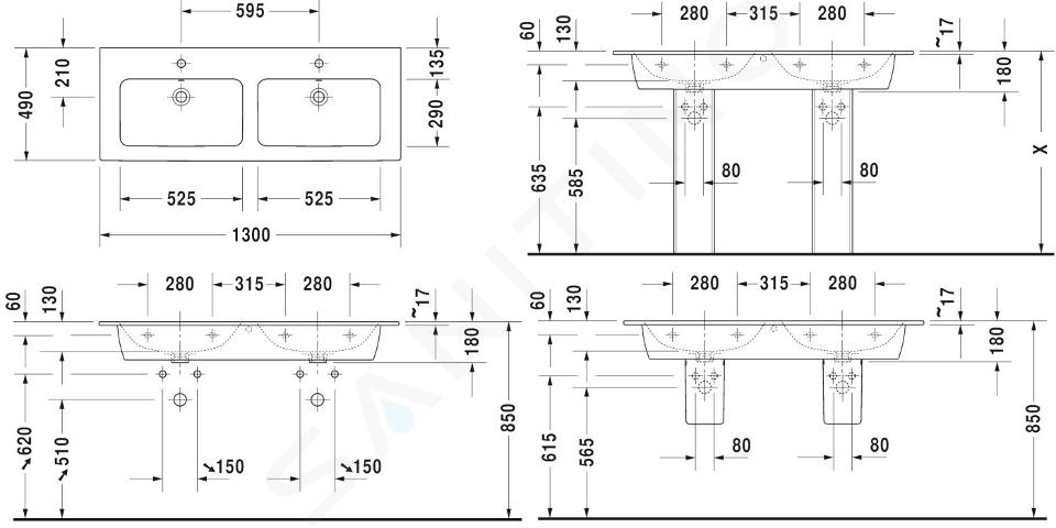En combinaison avec une colonne/demi-colonne pour le lavabo, il faut toujours utiliser 2 pièces. (voir dessin technique)
