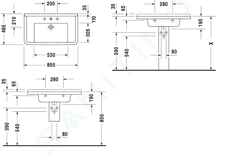 Lavabo suspendu avec trop-plein dimensions : 850 x 485 mm matériau :... Afficher la description complète
