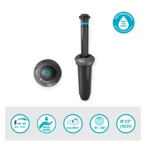 Le système GARDENA Sprinklersystem est une solution complète comprenant des arroseurs escamotables, des raccords, des tuyaux et des kits de démarrage, conçue pour un arrosage pratique et efficace de la pelouse. C’est le choix idéal pour tous ceux qui souhaitent gagner du temps, automatiser l’entretien de leur jardin et garantir à leur gazon une hydratation optimale – sans avoir à arroser manuellement chaque jour. Grâce à son installation facile et à son fonctionnement fiable, le système convient aussi bien aux petits qu’aux grands jardins.