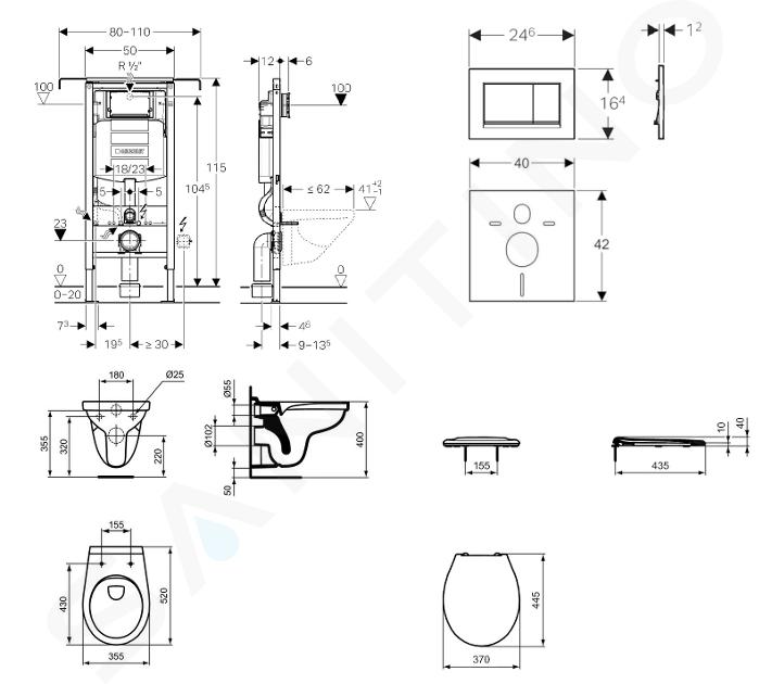 Set d’installation en applique, cuvette et abattant Ideal Standard, plaque de déclenchement Sigma30, chrome