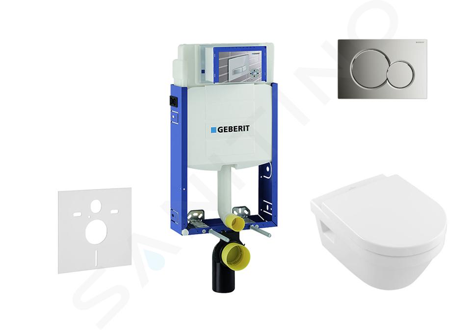Set d’installation en applique, cuvette et abattant Villeroy & Boch, plaque de déclenchement Sigma01, chrome brillant
