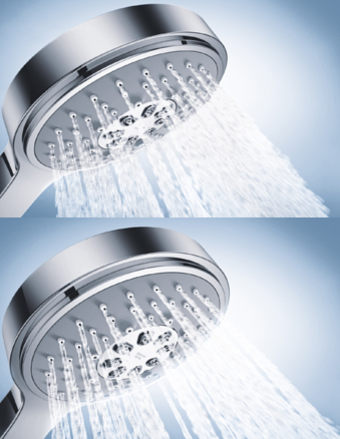 SpeedCleanTechnologie SpeedClean: Les buses en silicone protègent la surface chromée et préviennent la fixation du calcaire qui se brise et se détache en un seul coup d’éponge. Isolation du conduit d’eau InnerWater Guide à l’intérieur de la douchette qui protège des risques de brûlures. Cela permet également de protéger la finition chromée et d’augmenter la durée de vie de votre douchette à main. |