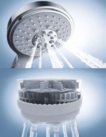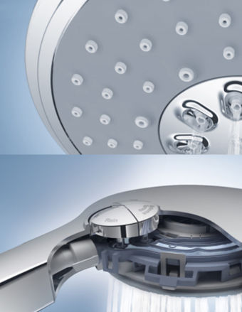 Dans chaque pommeau de douche, vous trouverez un mouvement ingénieux qui distribue parfaitement l'eau vers les buses individuelles. Le résultat est un jet d'eau équilibré et une expérience de douche agréable. Vous pouvez choisir parmi de nombreux jets différents - par exemple, un jet de massage classique avec la technologie GROHE Bokoma Spray, ou un jet aéré GROHE Rain O2.