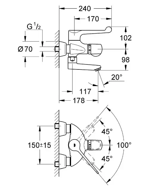 Grohtherm Ergomix Robinetterie médicale thermostatique, DN15 pour le... Afficher la description complète