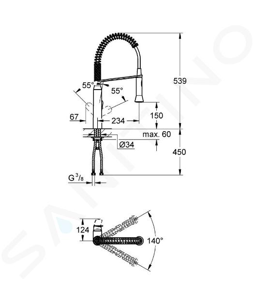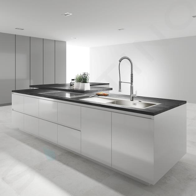 Le bec haut pivotant en forme de « U » vous permettra de travailler facilement dans l'espace de l'évier. En même temps, vous pouvez facilement remplir des récipients hauts ou volumineux. La douchette métallique professionnelle vous ravira avec deux jets d'eau : un jet de douche SpeedClean doux et intense. Le mitigeur d'évier est équipé d'un limiteur de débit ajustable. Cela permettra de garder votre consommation d'eau sous contrôle. Laissez les professionnels vous aider dans votre cuisine.