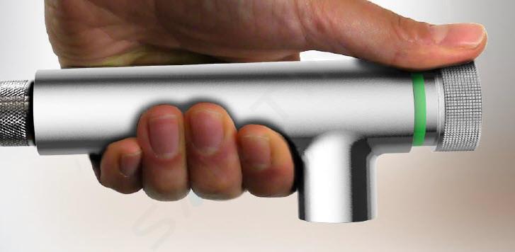 Cette technologie innovante a été développée avec une parfaite facilité d'utilisation à l'esprit. En appuyant sur le bouton, vous pouvez facilement activer et désactiver le débit d'eau et tourner le bouton pour régler sa température. Le système mémorise la température et le volume réglés pour la prochaine utilisation. Pour démarrer la douche de tête et la douchette à main en même temps, appuyez simplement sur les deux boutons. Ces boutons peuvent être utilisés pour commuter et combiner des modes de courant individuels en même temps.