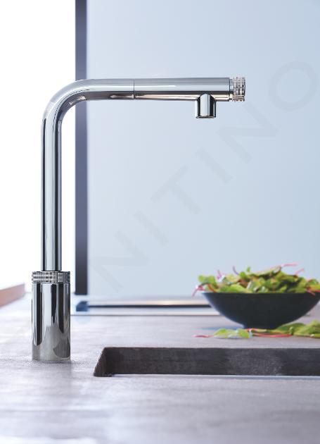 Le mitigeur de cuisine GROHE Minta SmartControl pousse un peu plus loin les possibilités d'équipement dans la cuisine. Le mitigeur est contrôlée via le bouton SmartControl, lorsque vous appuyez dessus pour démarrer le débit d'eau et en le tournant, vous réglez l'intensité du débit de l'EcoJoy au jet FullFlow. Vous contrôlez la température de l'eau par le mélangeur sur le robinet. Le bec haute en forme de "L" permet un remplissage facile des récipients, mais aussi un travail confortable dans l'espace évier. La douchette extractible à jet laminaire élargit également les possibilités pratiques. Après l'avoir utilisé, vous pouvez facilement le remettre en place grâce au système coulissant magnétique GROHE EasyDock. Vous serez ravi d'apprendre que la conduite d'eau à l'intérieur du robinet ne contient ni nickel ni plomb (GROHE Zero). L'avantage est également la facilité d'installation du mitigeur, qui est assistée par le système de fixation rapide GROHE QuickFix. Un avantage significatif du mitigeur sont également les surfaces chromées rayonnantes, qui soutiennent l'apparence générale du mitigeur. La technologie GROHE StarLight prend soin de leur brillance à long terme, tout en soutenant leur résistance aux rayures et en empêchant la saleté de se déposer.