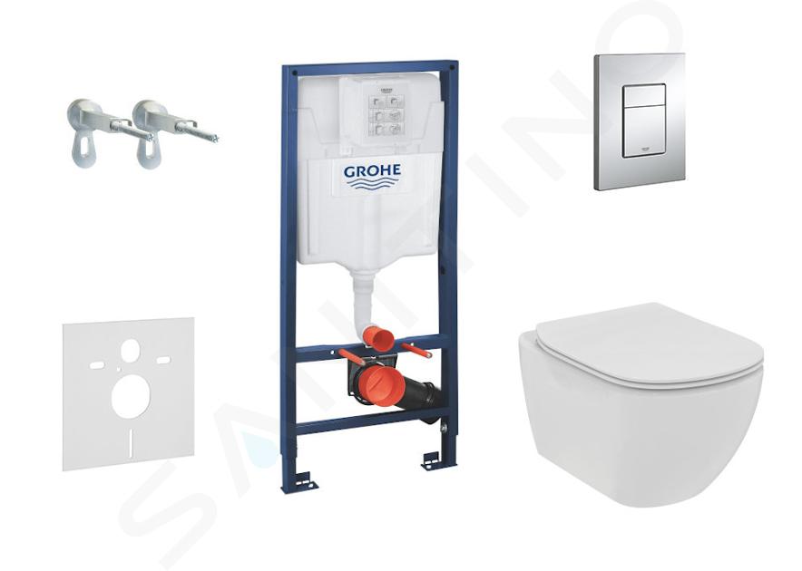 Set de bâti-support, cuvette et abattant Ideal Standard Tesi, plaque de déclenchement Skate Cosmopolitan, chrome