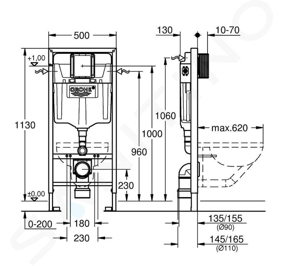 Le bâti-support destiné à l'installation d'un WC suspendu est conçu pour répondre aux exigences élevées d'une salle de bain moderne tout en proposant un confort et une sécurité parfaite. Facilité d'installation impressionnante (appuyé au mur ou dans une cloison en plaques de plâtre), que fournit le système GROHE QuickFix, ainsi qu'une capacité de charge de l'ensemble du système de 400 kg. Vous apprécierez certainement la plaque universelle, compatible avec toutes les plaques de déclenchement, vous permettant ainsi d'accorder votre salle de bain dans les moindres détails.