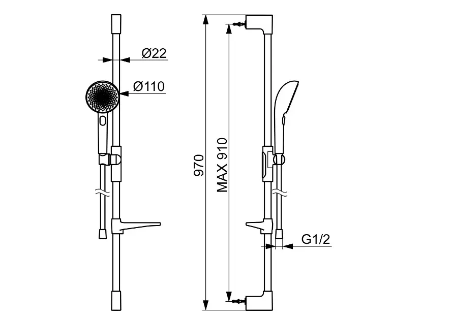 barre de douche avec support de douchette