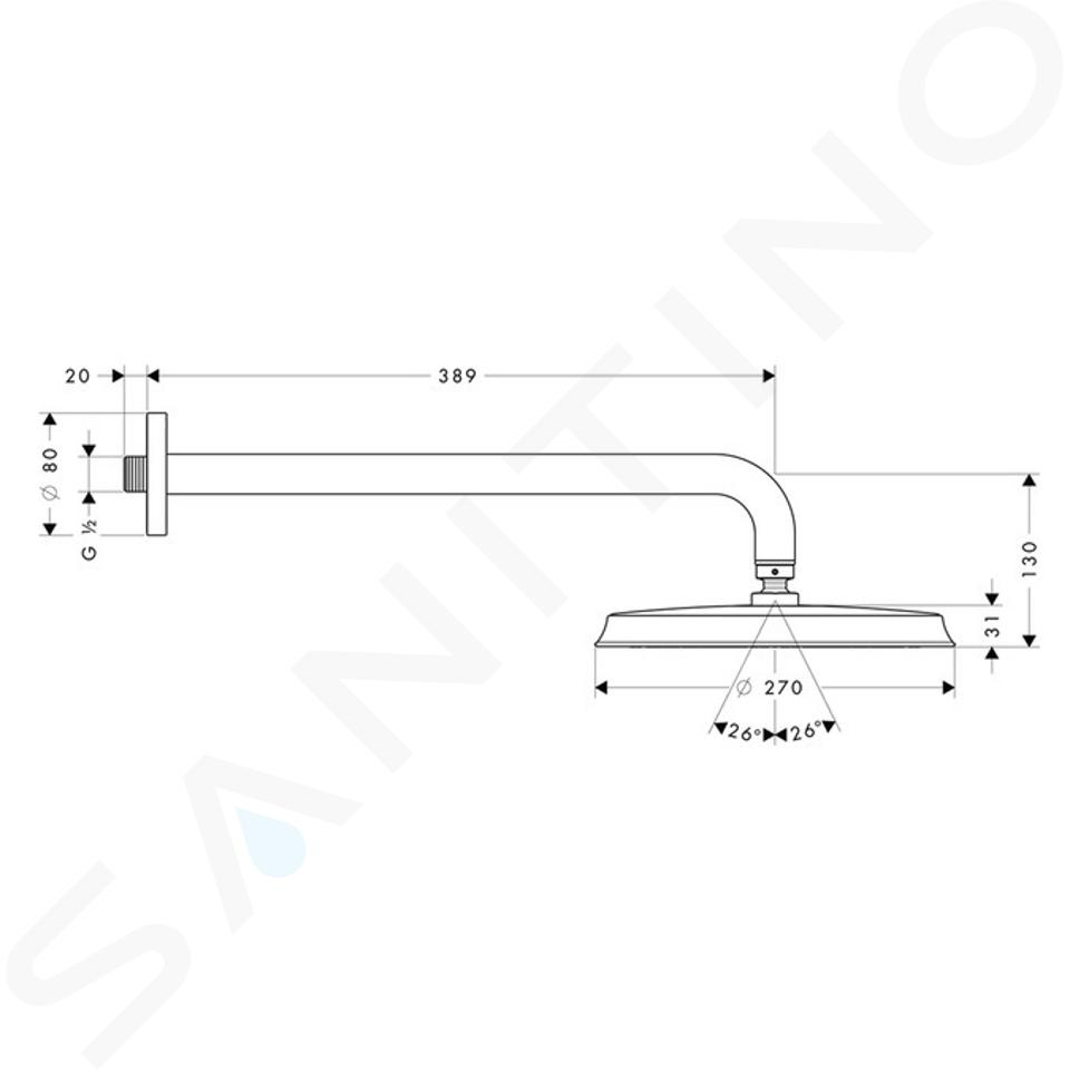 Douche de tête 270 avec bras de douche design : chrome / doré matériau... Afficher la description complète