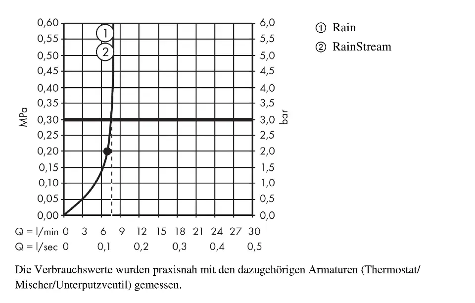 RainStream, le jet de douche doux est formé par des chaînes individuelles de perles d'eau, de sorte que ces jets spéciaux de la douche de tête ne se confondent pas, mais à n'importe quelle hauteur jusqu'au sol lui-même. Ils restent tout aussi rafraîchissants et intenses, quelle que soit la hauteur de la personne qui se douche.