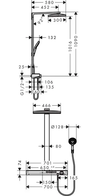 Set de douche Showerpipe, 3 jets douche de tête, douchette, thermostat... Afficher la description complète