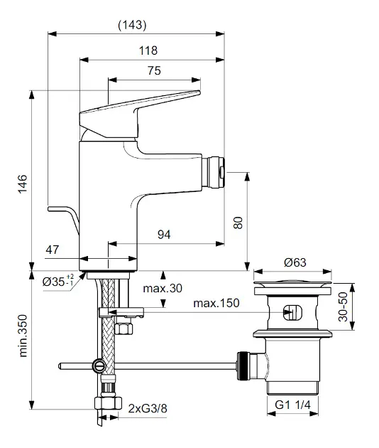 Mitigeur de bidet à levier avec garniture de vidage sur plage levier... Afficher la description complète