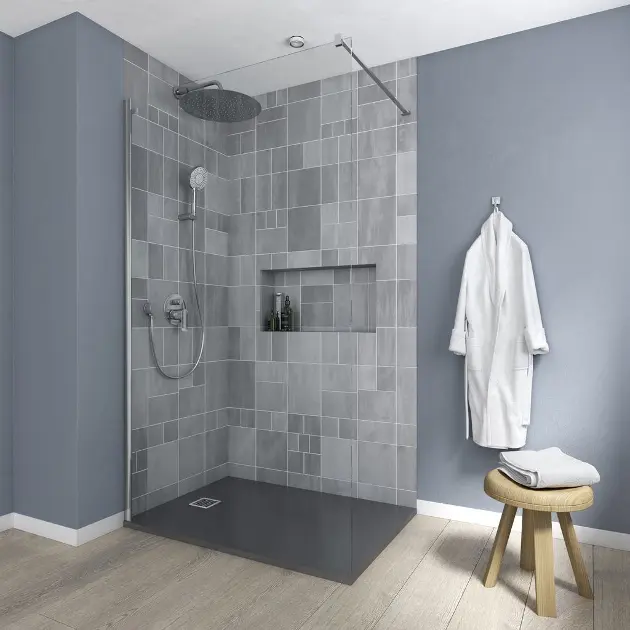Paroi de douche à installer avec le receveur de douche ou directement sur le sol
