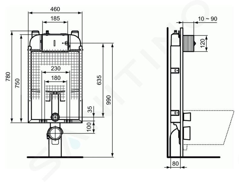 Bâti-support léger en applique ProSys 80M pour WC suspendu
