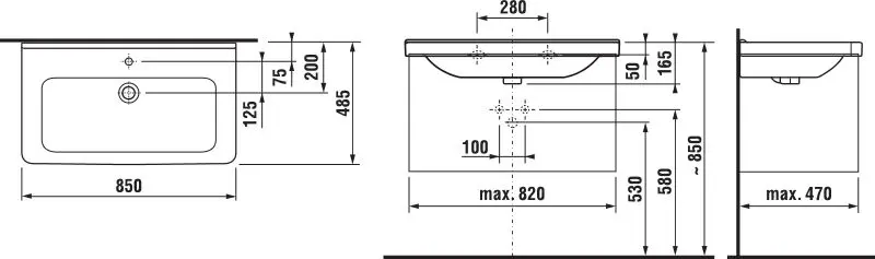 Lavabo suspendu avec trop-plein dimensions : 850 x 485 x 165 mm 1 trou... Afficher la description complète