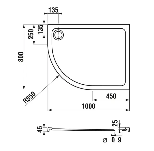 Receveur de douche asymétrique