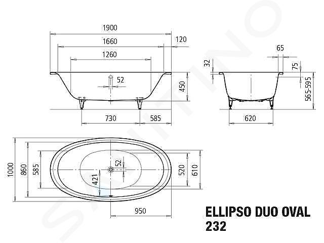 Baignoire ovale Ellipso Duo modèle : 232 dimension : 190x100x45 cm... Afficher la description complète
