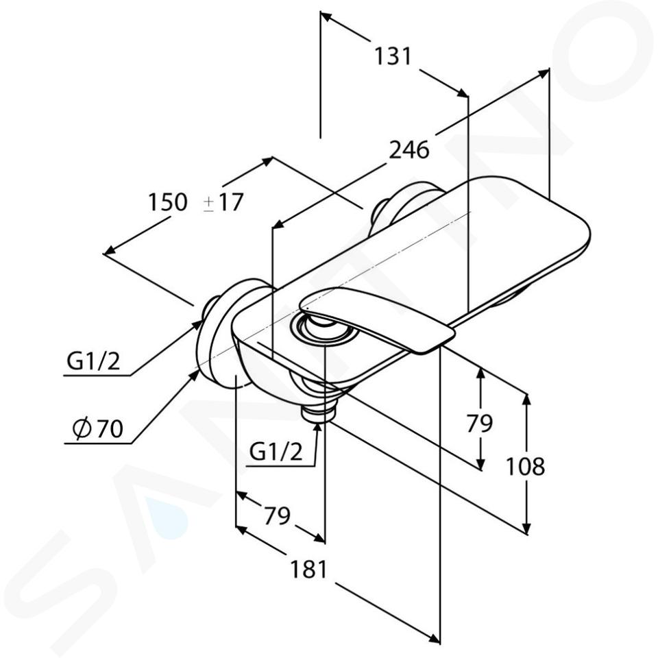 Mitigeur mural de douche commande : par levier cartouche céramique... Afficher la description complète