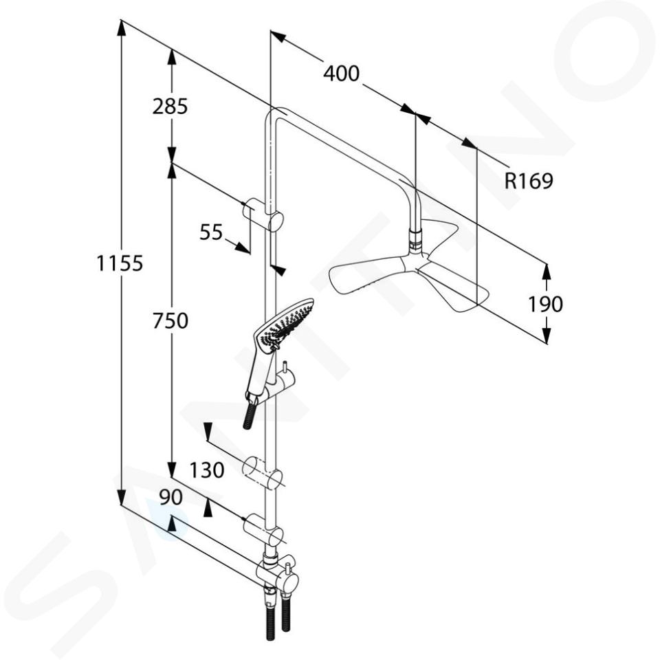 Set de douche Fizz Dual Shower System installation : murale avec bras... Afficher la description complète