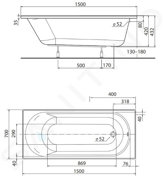 Acrylate sanitaire avec une excellente résistance, incroyablement facile à supporter l'utilisation quotidienne et très facile à entretenir grâce à la surface lisse. En cas de dommage, il peut être réparé. Le matériau maintient une température de bain constante, la surface acrylique est agréable au toucher.