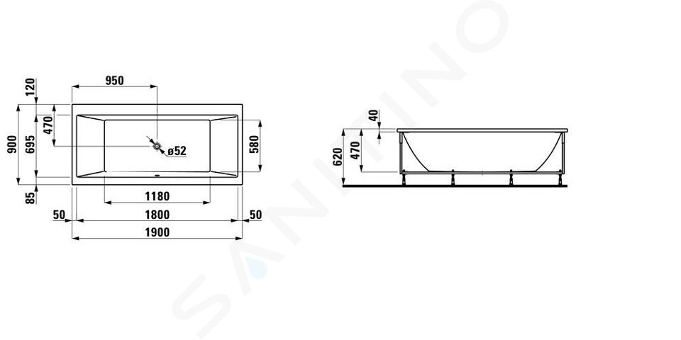 Baignoire d'angle droite avec panneau frontal, modèle gauche, avec construction