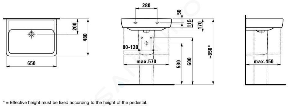 Lavabo sans trou pour robinetterie, avec trop-plein
