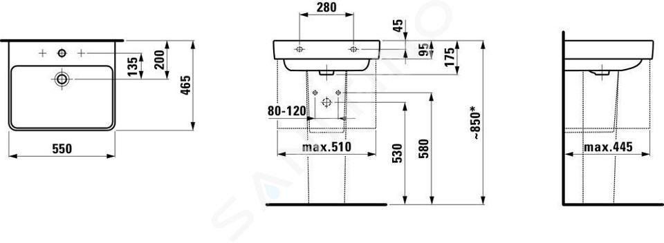 Lavabo avec 3 trous pour le mitigeur, avec trop-plein longueur : 550... Afficher la description complète