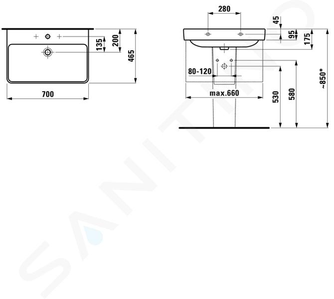 Lavabo avec un trou pour robinetterie, avec trop-plein longueur : 700... Afficher la description complète