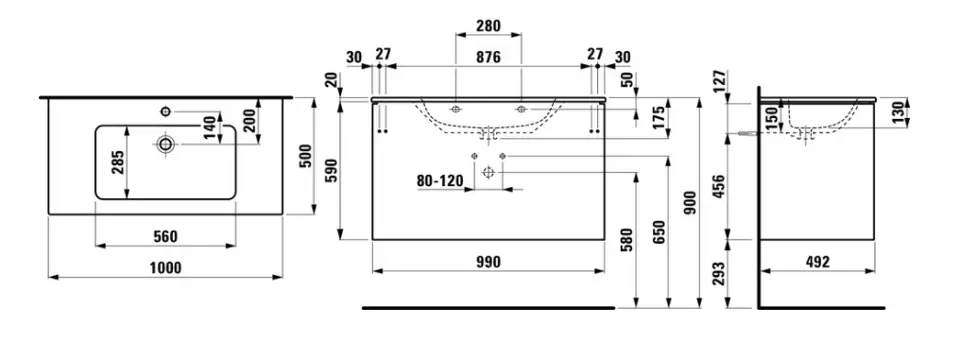 Lavabo slim avec armoire lavabo slim avec trop-plein avec trou de... Afficher la description complète