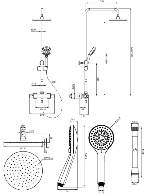 Le set de douche UNI comprend :