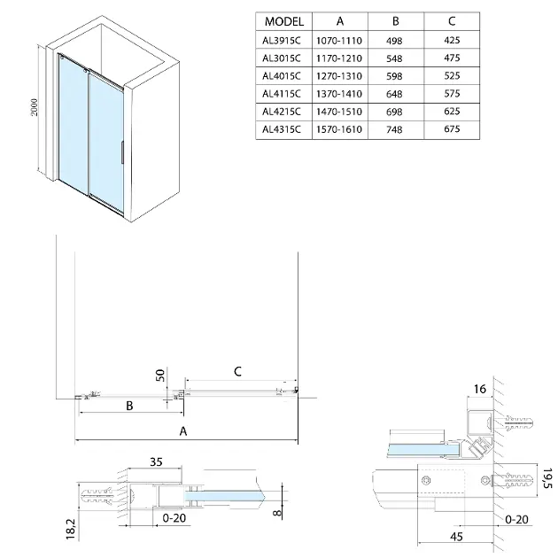 Porte de douche coulissante en deux parties ALTIS LINE dimensions... Afficher la description complète