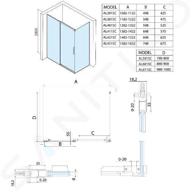 Porte de douche coulissante en deux parties ALTIS LINE dimensions... Afficher la description complète