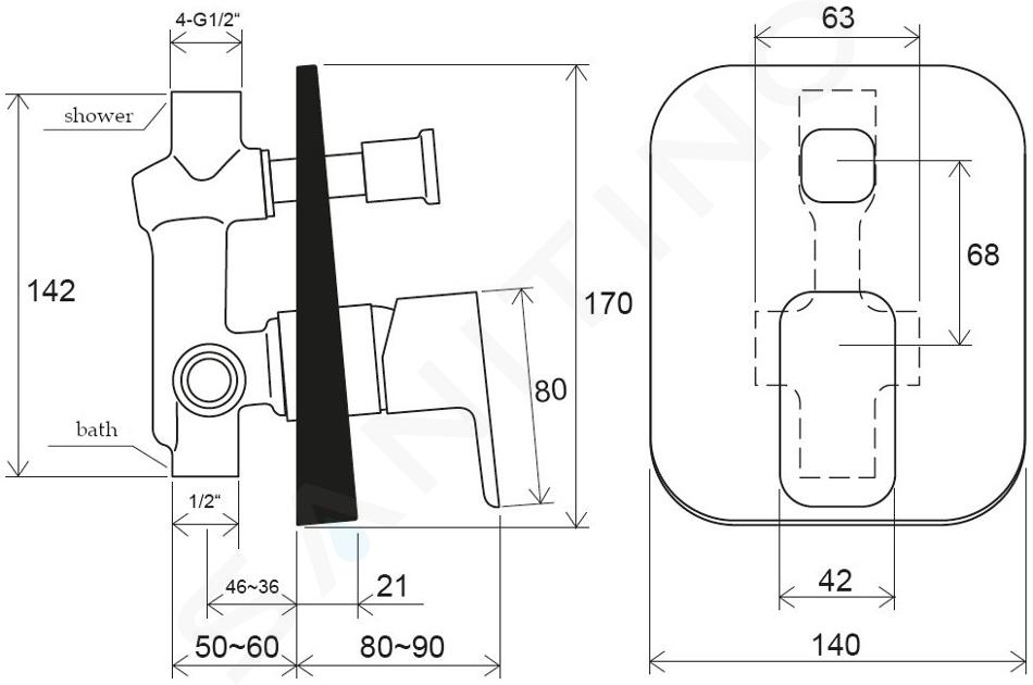 Mitigeur encastré de baignoire, avec corps robinet avec raccords en un... Afficher la description complète