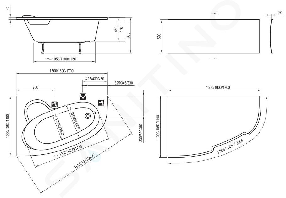 Bain Asymétrique 160 R dimensions : 1600 × 1050 mm matériau :... Afficher la description complète