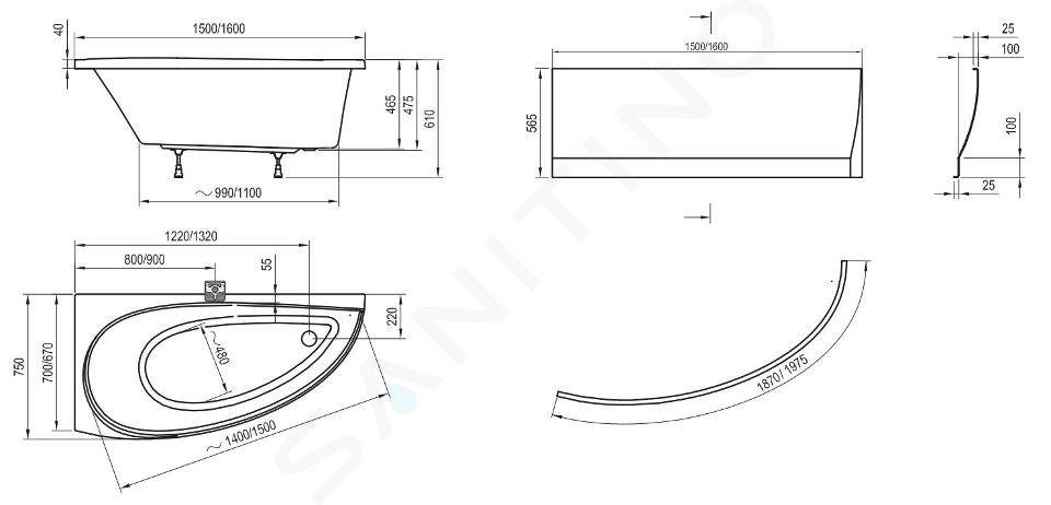 Baignoire asymétrique Avocado 160 L dimensions : 1600 × 750 mm... Afficher la description complète