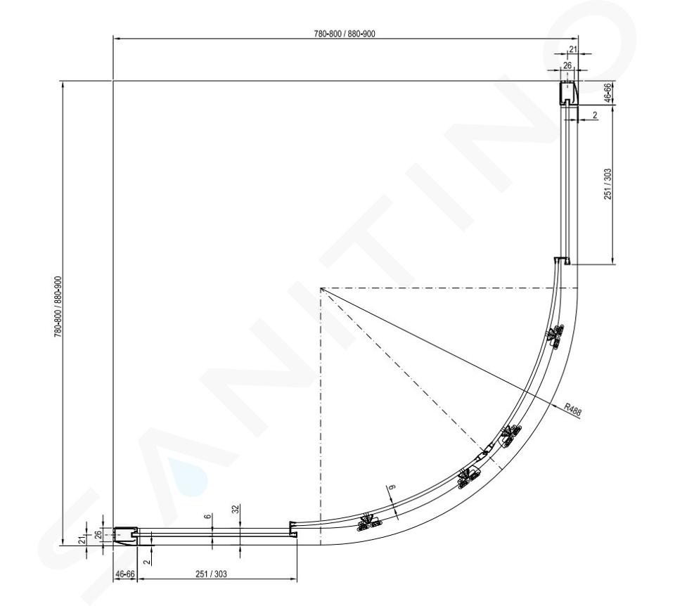 Cabine de douche en quatre parties BLCP4-90 avec portes coulissantes