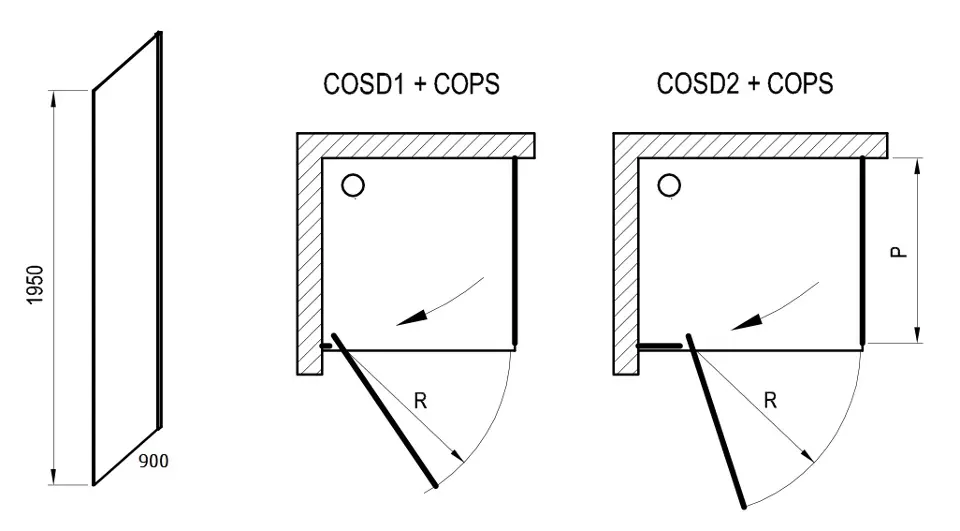 Paroi de douche COPS-90 couleur du profil : chrome brillant... Afficher la description complète