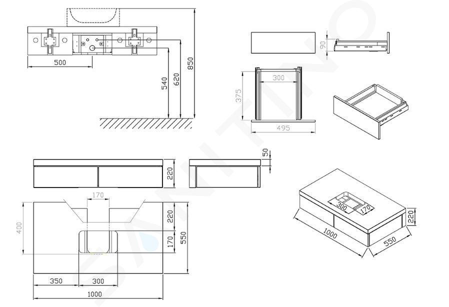 Meuble suspendu sous lavabo dimensions : 1000 x 550 x 220 mm matériau... Afficher la description complète